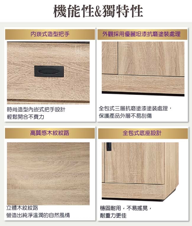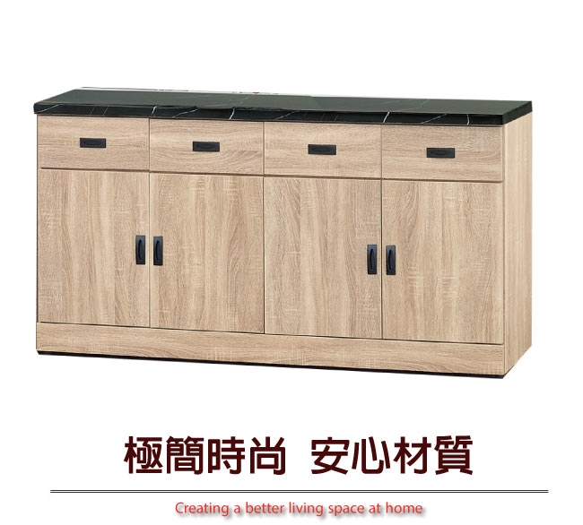 【品味居 】瑪加 時尚5.3尺雲紋石面餐櫃/收納櫃 採用橡木紋色系+高質感外觀造型設計,採用防蛀木心板+2cm雲紋石面+五金滑軌結構+防夾手緩衝五金+優利坦三層抗磨全包式塗漆處理+時尚造型把手等安心材質 ,防止受潮,增加支撐力,堅固不會塌陷,採用四抽屜+開放式桌面+四門櫃等收納空間設計,高雅的紋路,營造隨性時尚感,清潔容易不麻煩。全由專人配送到家,專業安心服務,替你省下更多時間! 【商品特色】 優麗坦抗磨三層全包式塗漆塗裝,讓保養維護變得簡單容易,使用壽命更長久 四抽屜+開放式桌面+四門櫃等收納空間,讓您好收納,保持空間整齊乾淨不再是夢想 防蛀木心板+2cm雲紋石面等材質,結構牢固耐用,也不用擔心蟲蛀的煩惱,使用放心 此商品不需要DIY組立,此商品為組立後之成品 品質保證、專業設計、貼心服務 全由專人配送到家,專業安心服務,替你省下更多時間