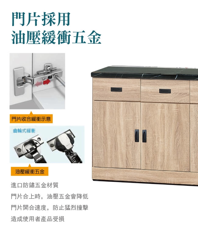 2cm雲紋石面板 防蛀木心板 防夾手緩衝五金 五金滑軌結構 四抽屜 開放式桌面 四門櫃 專人送到府服務 免組裝免運費 類型 餐櫃開門方式 拉門層數 兩層抽屜 四抽尺寸 公分 寬 售價:16572