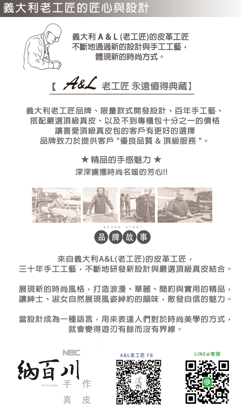 體驗說明 使用方法說明 無 注意事項 退貨條件 鑑賞期間,如需退換貨,商品本身、贈品、包裝彩盒均『全新未經使用』狀態且完整包裝 *商品圖檔顏色因電腦螢幕設定差異會略有不同,以實際商品顏色為準,請見諒 *商品領標及吊牌一經拆剪或損壞,則視同缺件,请恕無法受理退換貨的服務 *辦理商品退換貨時,商品如有贈品或配件,麻煩請一併寄回 *贈品瑕疵請恕我們無法幫您做更換或退貨 清潔方式 *请先用清潔刷或乾棉布,將灰塵等髒污刷掉,再擠適量的皮革清潔用品(最好使用真皮/皮革專用的清潔劑)在眼鏡布上,然後均勻地將清潔劑擦拭在皮革 保存/收納方法 *收納時可塞些許報紙,撐出包包形體,並置放於通風處,以免變形 異味處理方法 *包包剛從工廠新鮮出爐,部分商品可能皮革的味道還來不及消散,塞一些填充物掛在通風處放置幾天,味道會慢慢散掉哦~